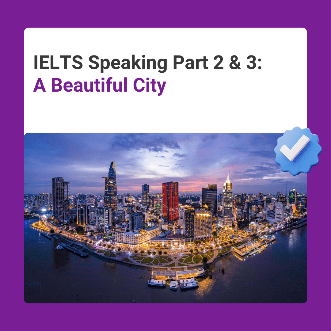 Bài viết chia sẻ hai bài mẫu cho Part 2 và Part 3 về cách mô tả một thành phố đẹp. Mỗi bài mẫu sẽ giúp bạn học cách sử dụng từ ngữ và cách triển khai ý tưởng hiệu quả.