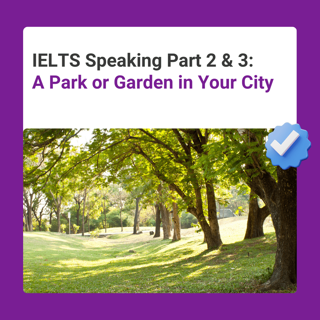IELTS Speaking Part 2 & 3: A Park or Garden in Your City